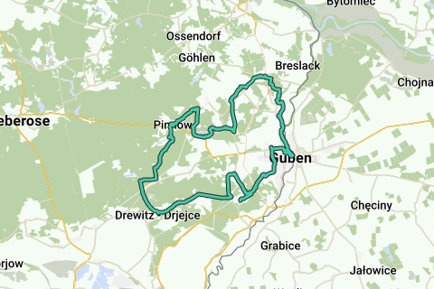 La excursión de un día "El gran tour de las iglesias del pueblo" también se puede recorrer utilizando el nuevo sistema de señalización a lo largo de puntos de conexión. Los siguientes puntos de conexión se pasan al iniciar/finalizar en Guben (punto de conexión 74):