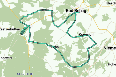 Trayecto: Bad Belzig, Krahnepuhl, Lühnsdorf, Buchholz, Rädigke, Raben, Grubo, Jeserig/Fläming, Wiesenburg, Neuehütten, Schlamau, Schmerwitz, Hagelberg, Klein Glien, Borne, Bad Belzig.