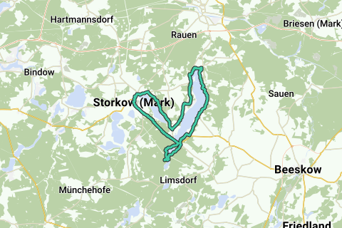 Recorrido: Storkow, Dahmsdorf, Wendisch Rietz, Bad Saarow, Pieskow, Diensdorf-Radlow, Wendisch Rietz, Storkow.