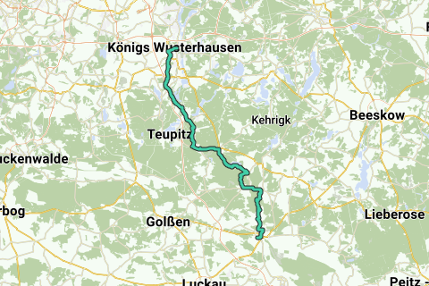 a través de: Schenkendorf - Krummensee - Groß Köris - Halbe - Märkisch Buchholz - Köthen - Schlepzig - Petkamsberg