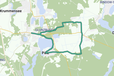Una caminata deportiva a lo largo de la orilla del lago Pätzer Vordersee, a través del lugar Pätz. Hacia la Dubrow, la antigua zona de caza del rey soldado Federico Guillermo I, hasta Gräbendorf y a través de praderas y bosques de regreso a Bestensee. Las instalaciones gastronómicas en Bestensee ofrecen la posibilidad de descansar y reponer fuerzas.