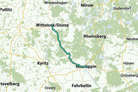 Lugares a lo largo de la ruta: Wittstock/Dosse, Goldbeck, Dossow, Fretzdorf, Katerbow, Kränzlin, Neuruppin