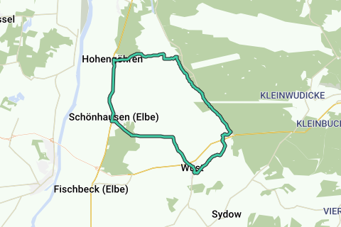 Puede comenzar su tour en Hohengöhren en el punto de conexión 18 y seguir el camino para bicicletas junto a la carretera hacia Schönhausen (Elbe) hasta el punto de conexión 77. Tiene la posibilidad de visitar la exposición de Bismarck, el parque barroco y la iglesia románica de ladrillo. Siga las señales para bicicletas hasta el punto de conexión 30 y gire a la izquierda en dirección a Wust. Atravesará el bosque hasta llegar a un camino de losas. Éste lo llevará hasta Wust. Deberá cruzar la B188 y avanzar por la aldea directamente hacia la iglesia con la cripta Katte y la antigua sede de los von Katte. (en el punto de conexión 6) Detrás de la casa señorial a su derecha se encuentra el Muuuhseum de Altmark en un antiguo almacén. Gire a la izquierda antes de la iglesia en el punto de conexión 6 y pedalee por la calle asfaltada hasta la población de Wuster con su horno de pan. Al final de la calle cruce nuevamente la B188 y acceda a un camino forestal. Llegará a la localidad de Wuster Damm y girará a la izquierda en la carretera hacia Klietz hasta alcanzar el punto de conexión 33 en el centro de la localidad de Hohengöhren Damm. Pedalee en el cruce hacia la izquierda por una carretera poco transitada en dirección al punto de conexión 18 hacia Hohengöhren.
