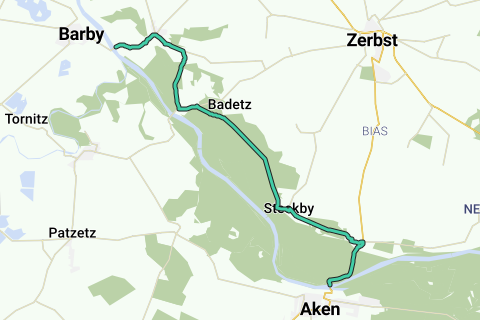 Ruta: Ferry de Aken – Steutz – Steckby – Tochheim – Walternienburg – Ferry de Ronney. Destacados: Iglesia de ciclistas Steckby, reserva natural Steckby, hermosos caminos forestales, castillo de agua Walternienburg, centro medioambiental Ronney.