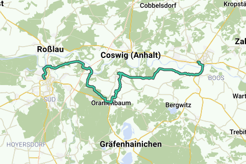 La ruta en bicicleta de aproximadamente 50 km transcurre por caminos conocidos y populares para ciclistas desde la ciudad de Lutero Wittenberg, pasando por Wörlitz y Oranienbaum hasta la ciudad de Bauhaus Dessau.