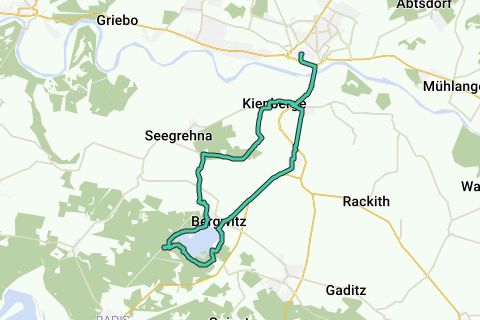 La ruta circular de aproximadamente 34 km lleva en la primera parte por los bien equipados caminos ciclísticos R1 o Berlín-Leipzig a través de Pratau hacia Bergwitz, luego alrededor del lago con oportunidades para bañarse y alquiler de botes y de regreso a través de Eutzsch.