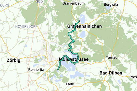 Esta etapa pasa por la localidad de Zschornewitz. Aquí merece la pena visitar la colonia de trabajadores. Ofrece al visitante una visión de la época de la construcción y la vivienda social a principios del siglo XX. Desde allí, la ruta le lleva alrededor del lago Muldestausee pasando por la "Casa junto al lago" hasta Bitterfeld. Allí, la región lacustre de Goitzsche ofrece una gran variedad de opciones de ocio y recreación.
