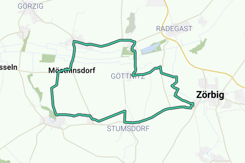Desde Zörbig, la ruta sigue un nuevo camino para bicicletas inicialmente hacia Stumsdorf. El lugar también es accesible en tren. En la iglesia del pueblo de estilo románico hay algunas piezas de equipamiento valiosas. Hacia el oeste, esta ruta continúa por un camino económico asfaltado hacia Werben, con su iglesia abierta diariamente, y desde allí sigue hacia Ostrau.