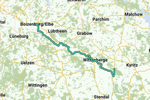 El Elberadweg serpentea a lo largo de uno de los ríos más hermosos de Europa. En el norte de Brandeburgo, recorre 90 km a través de Prignitz - siempre por el dique del Elba, a través de la reserva de biosfera Flusslandschaft Elbe de la UNESCO. En cada ocasión, atractivos puntos de experiencia en la naturaleza invitan a detenerse. Una parada que vale la pena es la aldea europea de las cigüeñas Rühstädt con sus 40 parejas de cigüeñas. Longitud: 164 km (tramo de Brandeburgo 79 km) Inicio: estación de tren Glöwen Destino: estación de tren Boitzenburg / Elba Logo / señalización del recorrido: Una "e" azul curvada que se convierte en la palabra "Elba", debajo la inscripción "Elberadweg". Viaje: Desde Berlín Zoologischer Garten con el RE7 (Dessau) hacia Glöwen. Desde Glöwen, alrededor de 10 km en bicicleta hacia Havelberg (aproximadamente 2h). Salida: Desde Boitzenburg con el RE4312 (Hamburgo) hasta Büchen. Desde allí, continúe con el IC2071 hasta la estación central de Berlín (aproximadamente 2h). Recorrido: Glöwen, Havelberg, Wittenberge, Lenzen, Dömitz, Boitzenburg Información interesante: Mühlberg: Conjunto monástico cisterciense Opciones de combinación: Havelradweg Tour de Brandeburgo Ruta Elba-Müritz Bischofstour Gänsetour Estado del camino / desarrollo de la ruta: En el tramo de Prignitz, el camino sigue el dique - siguiendo inmediatamente el curso del río - sobre superficies asfaltadas o ligadas al agua. En el área de Mühlberg, se circula por caminos asfaltados mejorados. Mapas / Literatura: "bikeline Radtourenbuch: Elbe-Radweg, parte 1: De Praga a Magdeburgo", 1:75.000, Esterbauer-Verlag, edición: 14. (2011), ISBN-13: 978-3850000307, 13,90 euros "bikeline Radtourenbuch: Elbe-Radweg, parte 2: De Magdeburgo a Cuxhaven", 1:75.000, Esterbauer-Verlag, edición: 13. (2012), ISBN-13: 978-3850000796, 13,90 euros Ofertas de organizadores de viajes en bicicleta Siguientes organizadores ofrecen viajes en bicicleta en el Elberadweg: AugustusTours