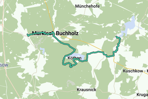 Esta etapa del sendero de 66 lagos va de Neuendorf am See a través de Birkholz y Märkisch Buchholz hasta Halbe. Durante la etapa, se encuentra a una altura máxima de 67 m s.n.m. y a una altura mínima de 39 m s.n.m. La etapa presenta una subida de 72 m y una bajada de 73 m. Longitud: 27 km (7h) Inicio: Neuendorf am See Destino: Halbe Logo / señalización del camino: Círculo azul completo sobre fondo blanco. Acceso: Desde la estación central de Berlín con el RE2 (Cottbus) hasta Lübben. Desde allí, continuar en el autobús 506 hacia Neuendorf am See (aprox. 2h). Regreso: Desde Halbe con el RB24 (Eberswalde) a Berlín Ostkreuz. Desde aquí, continuar con la S5 (Spandau) hasta la estación central de Berlín (aprox. 1h). Ruta: Neuendorf am See, Leibsch, Köthen, Märkisch Buchholz, Halbe Descripción del camino: La etapa comienza en la esquina noroeste de la zona de Spreewald, sale del Spree y avanza a lo largo de prados y un curso de agua pintoresco, el canal de conexión entre el Spree y el Dahme, mostrándonos prados con caballos y continuando luego en una gran zona de pinos. Los seis lagos de Köthener Heideseen, que están ocultos en el bosque, contrastan con la primera parte de la ruta. La continuación a lo largo del canal de desvío del Dahme ofrece nuevamente otras impresiones. La combinación de la zona de Spreewald aquí en el norte con los diferentes miradores en el camino, la posible observación de animales, los lagos de bosque soñadores, lugares de baño y descanso, y quizás una desviación incluso hacia la torre de observación en el Wehlaberg, los diferentes restaurantes muy recomendables y alojamientos resultan, junto con la etapa anterior, en ese algo especial que hace que una caminata sea perfecta, como la crema sobre un cappuccino. Posibilidades de combinación: Sendero de los lagos Köthener Heideseen Gran tour de 7 lagos Sendero europeo de larga distancia E10 Estado del camino / desarrollo de la ruta: Fuera de los núcleos urbanos, la etapa transcurre casi continuamente por caminos de tierra no pavimentados y caminos de campo, siendo extremadamente tranquila. Los caminos están 50% sin tratar, 40% parcialmente pavimentados y 10% de superficie dura. Mapas / literatura: "66-Seen-Weg, Hikeline Wanderführer", 1:50.000, editorial: Esterbauer, edición: 2 (2012), ISBN-13: 978-3850005012, 14,90 euros "Mapa de senderismo y ciclismo 66-Seen-Weg: A las bellezas naturales alrededor de Berlín", 1:50.000, editorial: Barthel, A., edición: 2 (1 de octubre de 2011), ISBN-13: 978-3895911552, 7,90 euros Reschke, Manfred: "La caminata de 66 lagos. A las bellezas naturales alrededor de Berlín", editorial Trescher; edición 8, actual. A. (2017), ISBN 978-3-89794-369-8, 14,95 euros