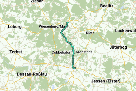 La sección de aproximadamente 41 km del Europaradweg comienza en Bad Belzig en un terreno sorprendentemente montañoso. En el centro del parque natural Hoher Fläming en Raben hay, además de la tienda regional y una interesante exposición permanente, un punto de servicio R1. Siguiendo la ruta hacia el sur, se une el Vorfläming de Roßlau-Wittenberg. El destino es la ciudad de Lutero Wittenberg con su casco antiguo lleno de experiencias.