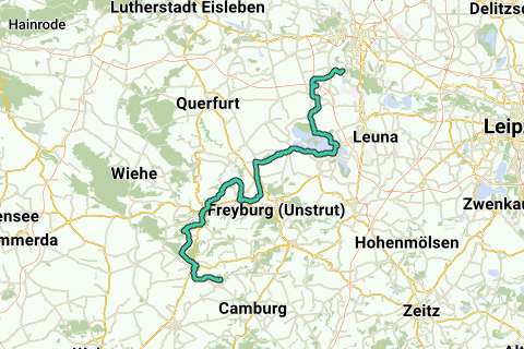 Saaleradweg Hohenweiden en Halle - Bad Lauchstädt - Geiseltalsee - Braunsbedra - Mücheln - Albersroda - Gleina - Müncheroda - Weischütz - Laucha - camino de Unstrut hasta Burgscheidungen - Bad Bibra - Eckartsberga - Auerstedt - Bad Sulza