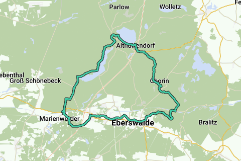 Ruta: Eberswalde, Finowfurt, Eichhorst, Joachimsthal, Althüttendorf, Chorin, esclusa de Stecher, Eberswalde