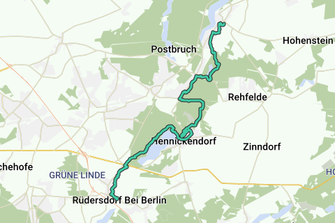 La 8. etapa del sendero de los 66 lagos le lleva de Strausberg a través de Hegermühle, Hennickendorf, Stienitzsee y Tasdorf hasta Rüdersdorf. En este recorrido superará 99 metros de desnivel y 140 m de descenso, con una altitud máxima de 79 m sobre el nivel del mar y una mínima de 34 m sobre el nivel del mar. Longitud: 25 km (6h) Inicio: Strausberg-Nord Objetivo: Rüdersdorf Logo / señalización: punto azul sobre fondo blanco Acceso: Desde la estación central de Berlín con el S5 hacia Strausberg (aprox. 1h). Regreso: Desde Rüdersdorf en el autobús 950 hasta Erkner. Desde aquí continuar con el R1 (Brandenburgo sobre la Havel) hasta la estación central de Berlín (aprox. 1h). Trayectoria: Strausberg, Eggersdorf, Hennickendorf, Großer Stienitzsee, Rüdersdorf Descripción del camino: Esta caminata ofrece bellos tramos con algunas particularidades. El Herrensee es una joya especial. Se diferencia de los lagos típicos de Brandenburgo en que está salpicado de muchas pequeñas islas, lo que le da un encanto especial. Aunque no es apto para bañarse, es de una belleza excepcional. En Hennickendorf se encuentra el molino Lemke, un antiguo molino de agua. Aquí se muele el grano para alimento animal aún con un antiguo sistema de propulsión eléctrica, que el típico molinero de Brandeburgo, Lemke, muestra y explica gustosamente por un pequeño pago. En su tienda de campo, los caminantes pueden comprar algunos dulces y bebidas. La orilla del pequeño Stienitzsee ofrece, como un parque muy cuidado, algo único: en el camino junto a la orilla se ven a la izquierda jardines con pequeños estanques justo detrás de la valla. Son manantiales enrejados, diseñados como estanques. A la orilla del lago, al final del paseo marítimo, hay un área de descanso donde manantiales burbujeantes brotan del suelo en forma de fuente, como en muchos lugares de los Alpes. La torre de las codornices en Hennickendorf ofrece una vista muy bonita sobre el paisaje de bosques y aguas circundantes. El final de esta etapa lo marca Rüdersdorf con su extenso parque de museos. Atractivos: Hennickendorf: Molino Lemke, Torre de codornices Herrensee con muchas pequeñas islas pequeño Stienitzsee: Parque con estanques (manantiales) Rüdersdorf: Parque de museos Estado del camino / desarrollo de la ruta: sin datos Mapas / literatura: "66-Seen-Weg, guía de senderismo Hikeline", 1:50.000, editorial: Esterbauer, edición: 2 (2012), ISBN-13: 978-3850005012, 14,90 euros "Mapa de senderismo y cicloturismo 66-Seen-Weg: hacia las bellezas naturales alrededor de Berlín", 1:50.000, editorial: Barthel, A., edición: 2 (1 de octubre de 2011), ISBN-13: 978-3895911552, 7,90 euros Reschke, Manfred: "La caminata de los 66 lagos. Hacia las bellezas naturales alrededor de Berlín", editorial Trescher; edición 8, actual. A. (2017), ISBN 978-3-89794-369-8 (www.trescher-verlag.de/reisefuehrer/deutschland/66-seen-wanderung.html)
