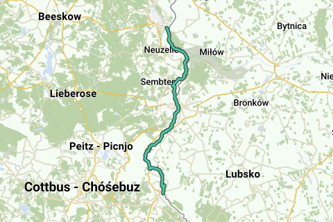 Recorrido: Forst (Lausitz), Sacro, Briesnig, Grießen, Albertinenaue, Groß Gastrose, Klein Gastrose, Guben, Groß Breesen, Coschen, Ratzdorf, Eisenhüttenstadt