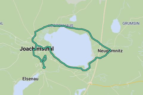 Descripción del camino: La ruta comienza en el Kaiserbahnhof de Joachimsthal y conduce a los lugares de interés de la ciudad de Schorfheide. Luego, sigue a lo largo del lago Grimnitz hacia Althüttendorf hasta el punto de observación de la naturaleza y continúa hacia Neugrimnitz. De regreso, se pedalea por el lado norte del lago Grimnitz y se disfruta de la magnífica tranquilidad.