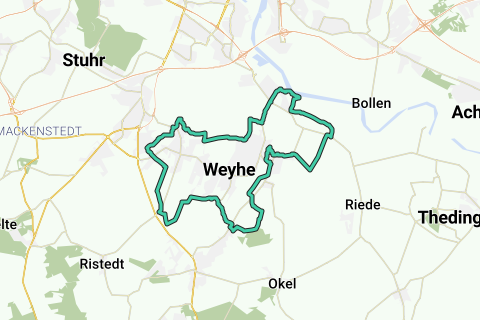 La ruta de Weyher transcurre por buenos caminos para bicicletas a través de un paisaje variado. El trayecto sigue mayormente el sistema de señalización para bicicletas, con rutas casi libres de automóviles. El recorrido en bicicleta de Weyher incluye partes del camino ciclista Weser, del Camino de Santiago y del Anillo Verde alrededor de Bremen.