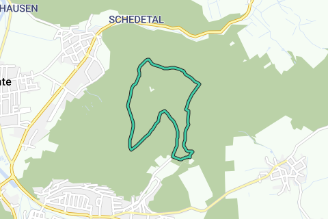 Este camino se extiende en el primer tramo desde la casa de caza Heede hasta "Heedes Quelle", poco después hacia la cabaña en el pozo Düsteren Kellerbrunnen. A través de un camino forestal habilitado que se dirige hacia el suroeste, se pasa por una estación de bombeo de agua de los servicios públicos de Hann. Münden (ciudad de servicios) - una parte del agua potable que la ciudad obtiene de sus propios bosques. Tras unos cientos de metros, el camino gira a la derecha hacia otro camino forestal ancho. Antes de que este se incline nuevamente hacia el este, se eleva ante el caminante la llamada Hünenburg - probablemente un refugio de emergencia, que estaba ubicado en la cima de la colina y solo se utilizaba en tiempos de peligro. Allí, la población junto con el ganado buscaba refugio en el interior de la fortificación. A lo largo de la ruta, el camino se mantiene paralelo durante un tiempo considerable a extrañas hendiduras en el terreno: El llamado "Knick" era anteriormente una instalación fronteriza aún más marcada, con zanjas excavadas y montículos levantados, que probablemente estaban plantados con arbustos espinosos para impedir la cruzada de esta antigua frontera. Para mantener la frontera densa, los arbustos debían doblarse con regularidad, es decir, romperse, para que brotaran nuevamente desde abajo. Tras pasar por los túmulos de la Edad del Bronce, la ruta regresa a la casa de caza Heede.