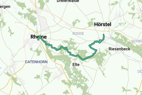 La ruta comienza en la estación de tren de Rheine, en la llana región de Münsterland, y transcurre a lo largo de la suave corriente del Bevergerner Aa hasta el idílico centro de Bevergern. Longitud de la etapa en kilómetros / metros de altitud / carácter del recorrido