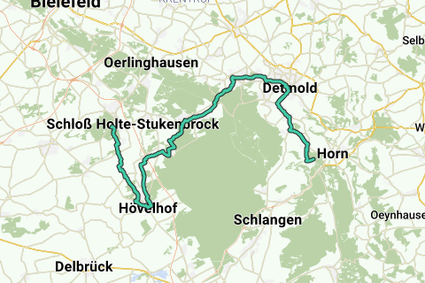 Desde el castillo de caza de Holte, que hoy alberga viviendas privadas, pedalearíamos por el bosque de Holter y el maravilloso paisaje de Sennelandschaft. El valle de Furlbach cerca de Augustdorf nos lleva a un paisaje de dunas bizarro. Después de cruzar cómodamente el bosque de Teutoburgo a través de la llamada Dörenschlucht, llegamos cerca de la ciudad cultural de Detmold, a los pies del monumento a Hermann. La excursión nos lleva a otros destinos valiosos: el parque de aves de Heiligenkirchen, el museo al aire libre LWL de Detmold y el centro de observación de aves rapaces de Berlebeck, considerado el más antiguo de Europa.