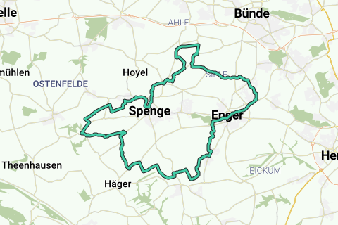 Este recorrido rural a través del suave paisaje cultural montañoso entre Enger y Spenge ofrece cultura y relajación en un entorno tranquilo. La ciudad de Widukind, Enger, es el punto de partida y de llegada de este recorrido. Aquí le esperan el museo Widukind, el museo de la curtiduría y el museo del ferrocarril en miniatura. El punto culminante de la gira es el Hücker Moor, que invita a quedarse en el jardín de cerveza o a remar en el lago Hücker Moor. La ruta pasa por numerosas asentamientos rurales y junto a granjas históricas, como la Sattelmeierhof Meyer en Hücker. No hay pendientes pronunciadas que superar, pero debido a la longitud, se debe tener una cierta condición física básica para este recorrido.