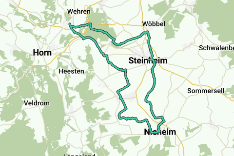 Ruta cómoda y mayormente llana a través de la zona rural de Hochstift hasta la histórica ciudad pequeña de Nieheim, disfrute allí de las especialidades.