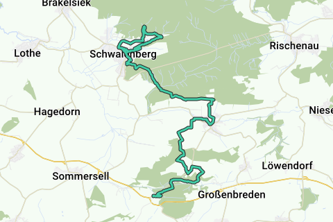 A través del bosque de Schwalenberg, que en algunos lugares ha sido muy despojado por el escarabajo del pino y ofrece nuevas vistas, el camino le conduce hacia abajo hasta el Steinbach, que se cruza a través de unas piedras de paso. En Westerberg (justo antes de Kollerbeck) se le ofrece una maravillosa vista panorámica del vasto paisaje. La ocasión ideal para hacer una pequeña pausa, disfrutar de la vista y escuchar en la tranquilidad. En el transcurso, seguirá el camino de los castillos, pasando por la notable Oldenburg, hasta la antigua abadía benedictina de Marienmünster.