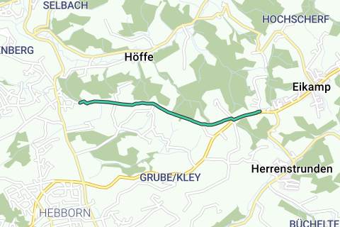 Este sendero asfaltado, también adecuado para personas en sillas de ruedas, tiene su punto de partida en el aparcamiento de senderismo cerca del pueblo de Altehufe. Desde aquí, el camino se dirige hacia el oeste a través de la cresta entre Voiswinkel y Eikamp. En la Edad Media, este mismo camino era parte de una importante ruta militar que conectaba Colonia con Wipperfürth. En sus bordes se pueden ver a menudo huellas de terraplenes y zanjas, que son los restos de barreras de peaje donde se cobraba peaje. En el pequeño pueblo de Oberborsbach, con sus hermosas casas de entramado de madera, termina la ruta adecuada para sillas de ruedas. Quien desee disfrutar de una maravillosa vista del valle del Rin y no le tema a algunas subidas menores, puede continuar hasta el aparcamiento de senderismo Sonnenberg. Dado que el camino desde aquí hasta Voiswinkel tiene una pendiente muy pronunciada, las personas en sillas de ruedas deberían emprender el camino de regreso aquí a más tardar.