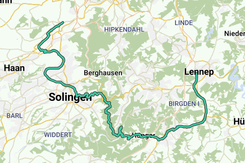 Con muchas vistas espectaculares en el equipaje, primero se va hacia Wermelskirchen y de allí por la ruta de los Balcanes hasta el hermoso casco antiguo de Remscheid Lennep.