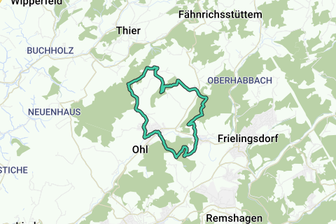 En la iglesia parroquial de Santa Águeda, que fue construida en 1913/14 en el lugar de una capilla privada de 1662, comienza el camino del paisaje cultural. Se deja la aldea y se llega a la pequeña aldea de Löhsüng. A lo largo de bosques y praderas, el camino se encuentra con el L-Weg y lo sigue hacia el este hasta Kohlersberg (306 m). Este tramo es parte del llamado Camino del Elector, una conexión entre las localidades de Bensberg y Attendorn, que pertenecieron al arzobispado y electorazgo de Colonia (Kurköln). En el cruce de caminos "Am Petrus", el sendero pasa junto al camping Oberbüschem con el restaurante Büschem's Besenstübchen. Luego continúa por los prados "Am Heiligen Stück" hasta el llamado Árbol Sagrado, un antiguo tilo que invita a descansar con asientos y una imagen religiosa. Prosigue a través de un bosque hasta el caserío de Stelberg y luego hacia Oberfeld. Se cruza la carretera y el Breun, un afluente de la Sülz, y se llega a la ladera opuesta hacia Steinenbrache. Hacia el sur, se desciende hacia la Sülz de Lindlar y la localidad mencionada por primera vez en 1318, Brochhagen. Aquí, cerca de la ruta de senderismo, se encuentra la posada "Im Wiesengrund" así como otros campings. Al sur de la Sülz de Lindlar, el camino lleva al Kerberg cerca del caserío de Hönighausen, antes de llegar a Hartegasse tras un nuevo cruce de la Sülz de Lindlar. En 1413, este lugar se menciona como "hadergassen". El nombre se compone de las palabras "hoar" (barro) y "gasse" (camino), lo que sugiere un camino profundo, húmedo y, por lo tanto, de difícil acceso. Este hecho se debe a la presencia de dolinas, ya que en caso de fuertes lluvias, los caminos subterráneos de agua eran demasiado estrechos y el agua excedente buscaba su camino a través de las calles del pueblo. Se puede encontrar un lugar para descansar en el "Musikalischen Wirt" antes de pasar por la finca de ponis islandeses Töltmyllan hasta el punto de partida.