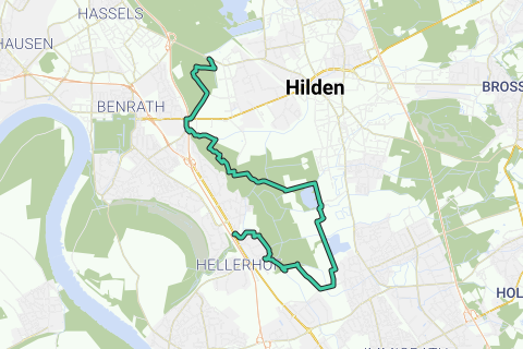 Comenzamos en Hülsenstraße en Hilden y caminamos hacia el sur en el extenso bosque Benrath. Allí encontramos una y otra vez la señal “D”, que es el camino de Düsseldorf, que conecta los suburbios de la ciudad de cerveza alt a la derecha del Rin.