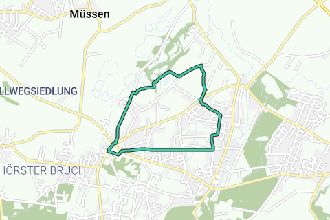 La abreviatura V. L. se refiere a la jurisdicción de Lage, a la que antes pertenecía el pueblo. La abreviatura V. H. se refiere a la jurisdicción de Heiden. La excursión comienza en el estanque del molino de Rethlage y pasa por el área residencial adyacente. Pasando por la iglesia del pueblo de la comunidad evangélica libre, continúa a través del barrio. En la calle Hardenberg se va luego hacia la izquierda a través de las Benten. Después de cruzar la calle Bielefelder, se avanza por los campos en dirección a los lagos de extracción. Allí aparece nuevamente el río Rethlager, que seguimos río arriba en dirección al cementerio. Desde aquí, regresamos a nuestro punto de partida por la calle Weber.