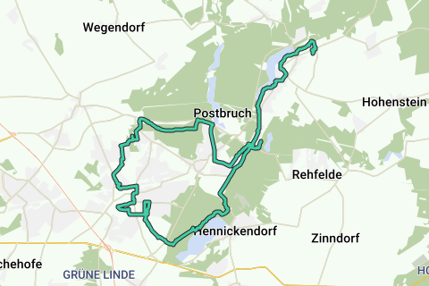 La variada ruta circular ofrece a los ciclistas de ocio un nuevo desafío. Comenzando en la estación de S-Bahn "Strausberg Nord", se sigue la señalización "Tour Brandenburg" inicialmente en dirección a Wilkendorf. Pasando por la granja infantil "Roter Hof", se cruza la Gielsdorfer Chaussee. A lo largo del Straussees, a través del casco antiguo de Strausberg y continuando hacia el sur, se encuentra el "ZR1". Siguiendo la señalización, el camino lleva a Eggersdorf, donde la playa en el Bötzsee invita a una pequeña refrescada. A través de un hermoso bosque mixto, se continúa en un bien construido camino ciclista hacia Bruchmühle. Ahora se sigue la "Tour 5" a través de caminos de campo y de bosque hacia Petershagen, donde la granja infantil "Mümmelmann" o el cobertizo de Angers invitan a un descanso. Después de un breve refrigerio, se avanza junto al campo antes de cruzar la carretera poco después de la ovejería. Luego, se sigue el camino del bosque hasta que desemboca en la Strausberger Straße, se gira a la izquierda y se sigue la Tour 5 a lo largo del Stienitzsee en dirección a Strausberg. Los ciclistas experimentados aquí utilizan la ruta a través del área de conservación de la naturaleza, al final de la cual una empinada escalera obliga a desmontar. Quien encuentre el camino demasiado difícil, puede optar por la ruta alternativa a lo largo de la Hennickendorfer Chaussee. La última etapa se desarrolla a lo largo del pintoresco Annafließ. Al llegar nuevamente a la carretera principal, se sigue la señalización hacia la estación de S-Bahn "Hegermühle", donde termina la ruta.