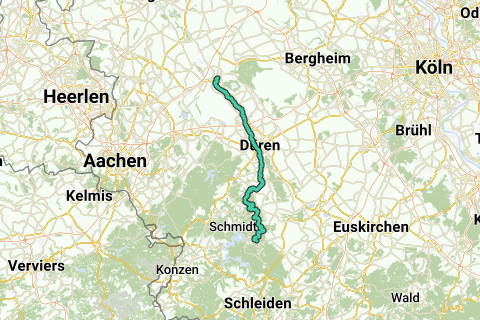Las rocas de arenisca acompañan a los ciclistas en su recorrido, acompañados por el agua, pasan por Abenden - con sus casas de entramado de madera, el lugar es una imagen de la conexión de la gente con su región. Paso a paso se avanza con la bici eléctrica hacia el parque nacional Eifel, donde la naturaleza puede ser naturaleza. A lo largo del Rur, que serpentea, la ruta continúa hasta Heimbach. Desde allí, el tren Rurtal trae a los ciclistas de vuelta a su punto de partida.
