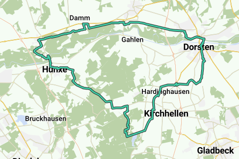 Desde el punto de conexión en la estación de tren en Dorsten, el recorrido lleva a través de un poco de tráfico urbano hacia el sur. Desde el punto de conexión 66, el recorrido se adentra en la Heide de Kirchheller, que se caracteriza inicialmente por vastos campos con muchas granjas y establos de caballos. Pequeñas comunidades rurales se recorren una y otra vez, así como extensos campos.