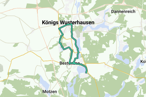 Recorrido: Estación de tren de Königs Wusterhausen, canal Notte, Krummensee, Zeesen, Bestensee, Pätz, Bestensee, Zeesen, parque animal de Königs Wusterhausen, estación de tren de Königs Wusterhausen