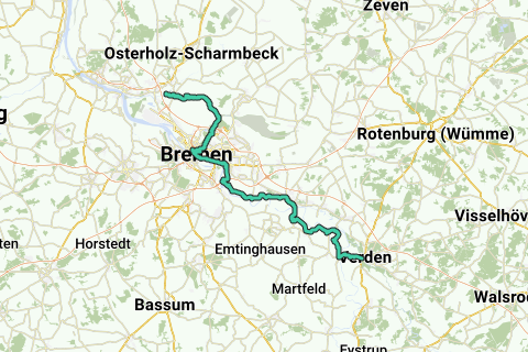 <p><a class="routeYou_embed" href="https://app.routeyou.com/es-de/route/view/14123441?utm_source=embed&utm_medium=article&utm_campaign=routeshare&navigation=external" title="Ruta alternativa del Weser-Radweg, 6ª etapa: De Verden a Bremen - RouteYou" target="_blank"><img src="https://image.routeyou.com/embed/route/960x670/14123441-es@2x.png" style="width: 100%; height: auto;" alt="Ruta alternativa del Weser-Radweg, 6ª etapa: De Verden a Bremen"></a></p>
