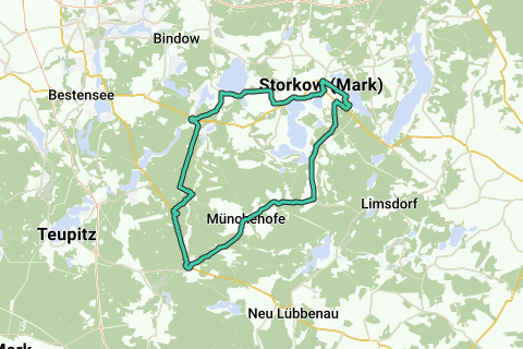 Ruta: Märkisch Buchholz - Casa Forestal Hammer - Prieros - Kolberg - Klein Schauen - Groß Schauen - Storkow - Hubertushöhe - Bugk - Kehrigk - Groß Eichholz - Münchehofe - Märkisch Buchholz