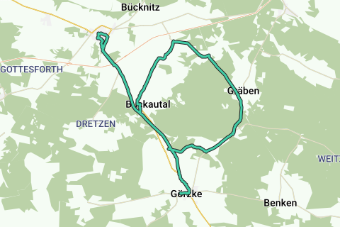 Trayectoria: Görzke, Rottstock, Köpernitz, Ziesar - Ziesar, Köpernitz, Buckau, Steinberg, Grebs, Gräben, Dahlen, Rottstock, Görzke