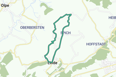 El camino comienza en el aparcamiento para senderistas Linde, junto a la iglesia parroquial católica construida en 1869. Se va hacia el norte a lo largo de la carretera en dirección a Frangenberg, pasando junto a una cruz de caminos. Al este se encuentra el pueblo de Spich. En una bifurcación del camino, la ruta lleva a través de un sendero en un bosque, cerca del pueblo de Kurtenbach. Desde allí, se puede seguir el Ommerbach hasta la fuente en Ommerborn. En este "punto de tres municipios" se encuentra un antiguo monasterio con una capilla, donde un sacerdote apoyó una vez la resistencia contra la ocupación francesa como el "Rebelde de Ommerborn". En la carretera de alturas, se encuentra el notable altar al aire libre, donde solían llevarse a cabo las procesiones anuales de Corpus Christi y la bendición de caballos y carruajes.