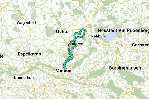 Pasando por molinos de viento, se llega a la ciudad del distrito de Minden, con su cruce de vías navegables y la esclusa de pozo. En el casco antiguo, la catedral con su tesorería, la plaza del mercado y el museo prusiano son dignos de ver. A lo lejos puede ver el monumento a Guillermo I en Porta Westfalica. Por cierto, aquí comienza el tramo fluvial "Mittelweser".