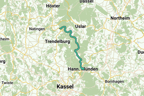 Alrededor de 700 casas de entramado de madera forman un escenario único en Hann. Münden. El ayuntamiento histórico es uno de los edificios más importantes del Renacimiento de Weser. Desde aquí, la ruta continúa a lo largo del Weser, siguiendo las curvas del río. Un destino excursionista popular es también la exposición al aire libre en miniatura "La plaza de los molinos" en Gieselwerder, con reproducciones cuidadosas de varios edificios de la región del Weser. Finalmente, se llega al barroco pueblo hugonote de Bad Karlshafen, que contrasta con el resto del Renacimiento de Weser. El Weser-Therme invita a una visita relajante, donde el día puede terminar en un ambiente acogedor.