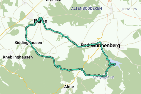La ruta de 44 km del Auenradweg cumple con estos requisitos. Conduce a lo largo de Alme, Nette, Lühlingsbach, Aabach y Afte a través de una de las regiones más pintorescas de la tierra de Bürener.