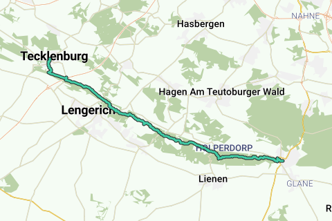 La etapa comienza en el pintoresco casco antiguo de Tecklenburg y termina en el castillo del balneario Kneipp de Bad Iburg.
