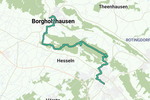 El camino de Halle a "Pium", como también se conoce a Borgholzhausen, está marcado por dos imponentes construcciones. La OWL ARENA al principio de la ruta representa la modernidad y el gran y amplio mundo. Por otro lado, el castillo de Ravensberg es el símbolo histórico de la tierra de Ravensberger. Después de descender del monte del castillo, los caminantes pasan por los pintorescos granjeros de arenisca de Osning en su camino hacia el destino. "Pium" finalmente ofrece huellas de dinosaurios y una de las iglesias más antiguas.