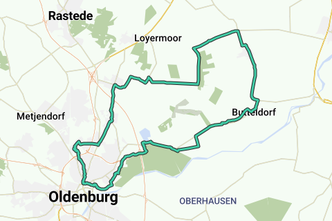 Comienzas en el Weser-Ems-Halle y pedaleas hacia el Pferdemarkt. Aquí ves el venerable edificio de la biblioteca estatal. Las típicas perreras de Oldenburg se destacan por sus hermosas decoraciones en fachadas y techos. Continúas hacia Etzhorn, un barrio de Oldenburg con dos destilerías. A través del espolón "Wahnbeck" hay un largo camino de turbera que lleva a la Wesermarsch. Casas de campesinos centenarias con entramado de madera blanco y techos de juncos se pueden encontrar en Mooriemen. Vacas y ovejas son tus compañeras constantes en los prados y diques. La reserva natural Gellener Torfmöörte te lleva a través del espolón "Bornhorster See" de regreso al centro. Hay abundantes productos lácteos para degustar.