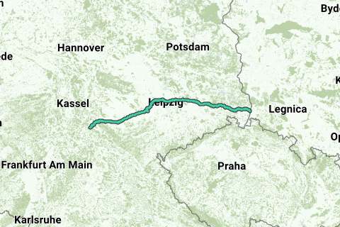 El camino se orienta a lo largo de la Via Regia y se extiende desde Görlitz hasta Vacha.