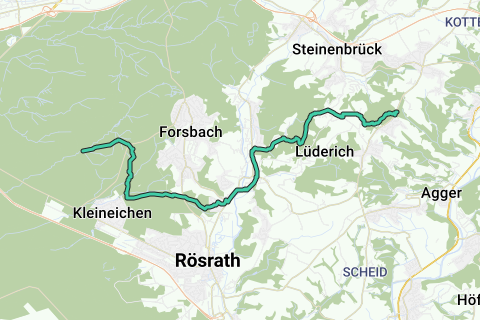 Experimenta una hermosa ruta de senderismo en el recorrido circular de 11.7 kilómetros en la naturaleza de Renania del Norte-Westfalia, cerca de Rösrath. La ruta de dificultad media te lleva a través de un paisaje encantador con un total de 260 metros de desnivel. A lo largo del camino, puedes admirar los encantadores lugares de Lüderich y la iglesia de la Cruz. La ruta está bien señalizada y ofrece un entorno mayormente libre de automóviles, ideal para disfrutar de la tranquilidad de la naturaleza y relajarte cerca del agua. Deja que el hermoso entorno te inspire y disfruta del aire fresco en tu aventura.