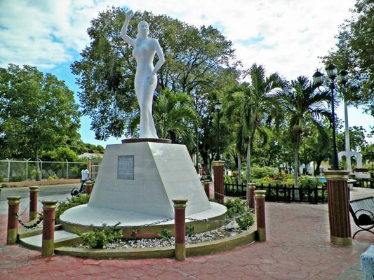 Escultura a Casandra Damirón, (12 de marzo de 1919 - 5 de diciembre de 1983), situada en la calle que lleva su mismo nombre, fue una cantante, bailarina y folklorista dominicana, nacida en la provincia Barahona, conocida en el país como "La Soberana de la Canción".