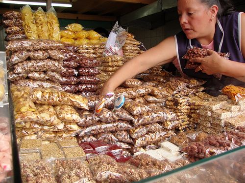 encontramos un local que se dedica a la producción de confites artesanales, el cucurucho del maní, como habas de dulce y de sal, maní confitado y de sal, dulces de guayaba, chifles, papas y colaciones que son unos típicos dulces quiteños que desde hace siglos se las hace en una paila gigante atada con cuerdas a una viga del techo que sirven para balancear de un lado a otro la preparación, consisten en tostar maní y poco a poco ir añadiendo un sirope especial que las van envolviendo hasta tener un tamaño aproximado de un centímetro. En este punto del viaje los turistas pueden comprar los dulces que más les guste.